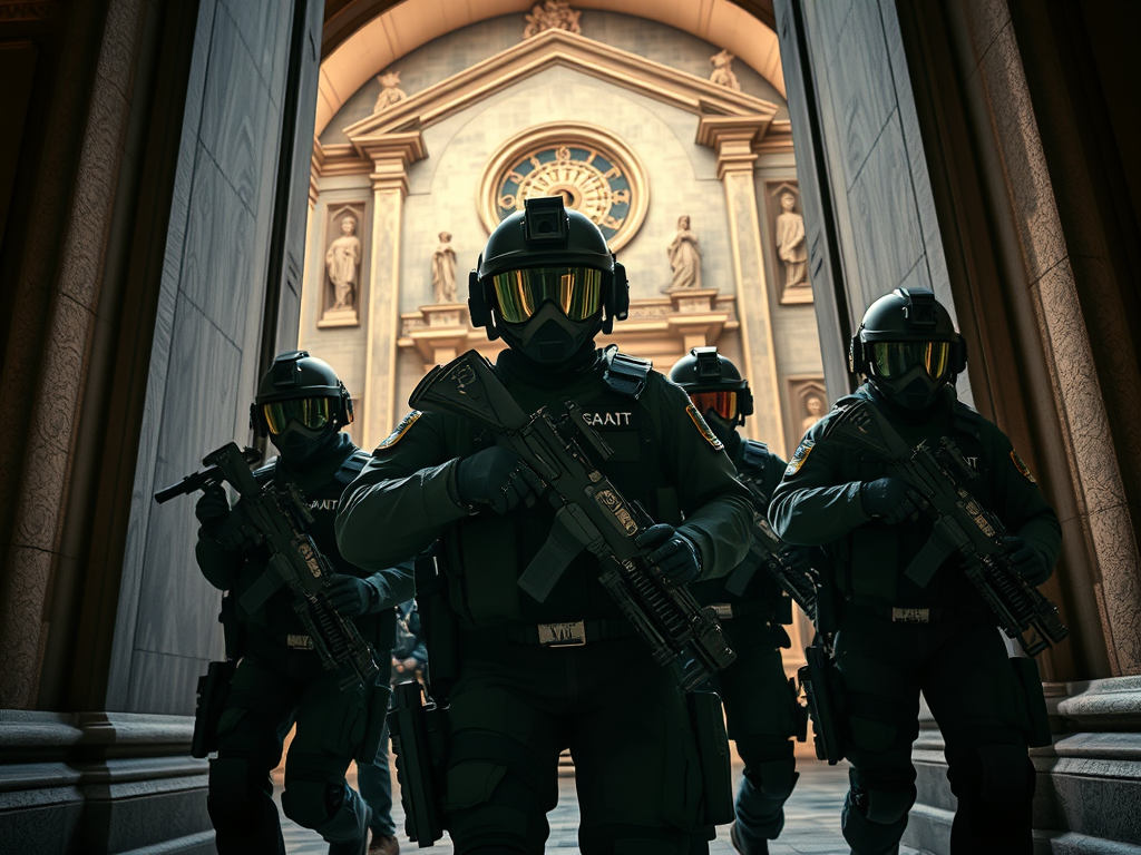 parte 1: Agenti in tenuta antisommossa irrompono nella chiesa di Vicofaro per sgomberare i migranti ospitati. La chiesa era stata trasformata in centro d'accoglienza da Don Massimo Biancalani, parroco noto per il suo impegno umanitario.