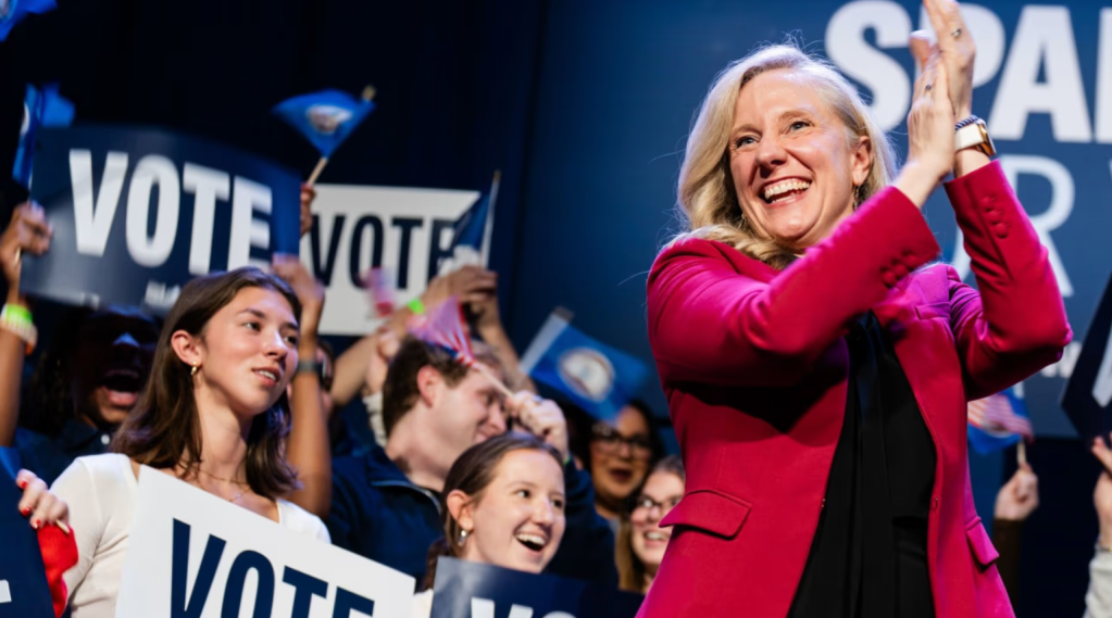 Abigail Spanberger, in Virginia, ha vinto con un margine netto puntando sulla crisi economica e sul diritto all’aborto — un tema che ha mobilitato anche gli elettori moderati.