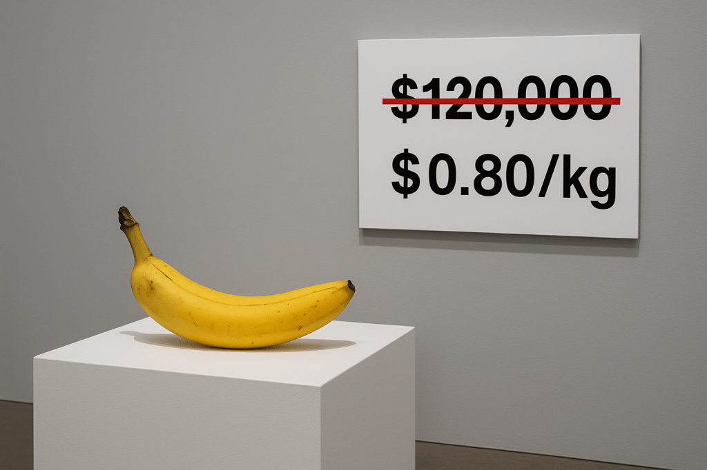 È come se all’improvviso la famosa banana di Cattelan fosse tornata a costare esattamente quanto una banana al supermercato.