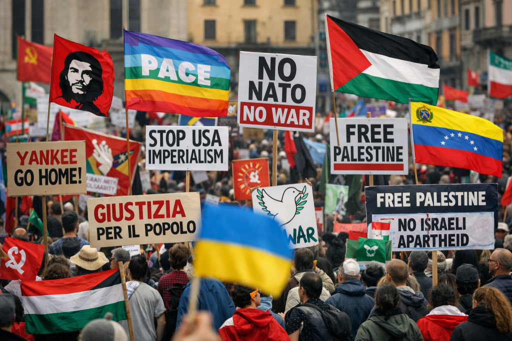 Non è amore per la pace, è allergia all’Occidente. Non è difesa dei deboli, è tifo per l’anti-occidente di turno. E il tifo, si sa, non ha bisogno di prove, solo di colori da indossare.