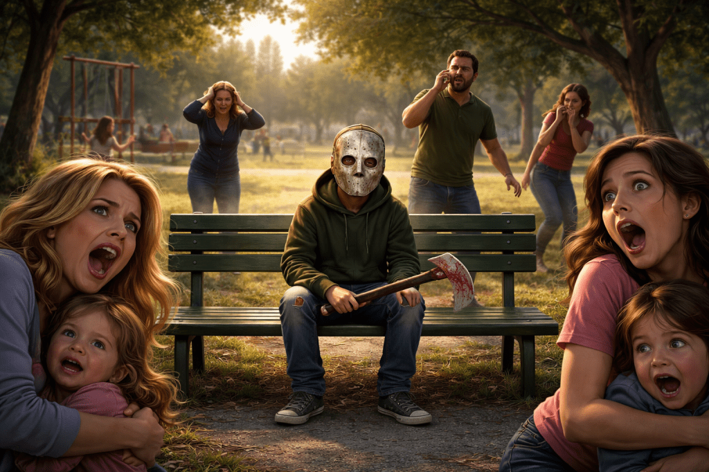 Venerdì 13, Lugo di Romagna. Già qui, volendo, basterebbe chiudere il pezzo e andare a bere un Sangiovese, perché l’estetica del destino aveva fatto tutto da sola. Ma no: entra in scena un quattordicenne vestito da Jason Voorhees, maschera d’ordinanza e piccone di plastica — che è già, di per sé, una scelta stilistica interessante, una via romagnola allo slasher. Si piazza al Parco delle Lavandaie, si siede, osserva, e poi decide di inseguire un paio di mamme con bambini. Performance art involontaria, diciamo così.