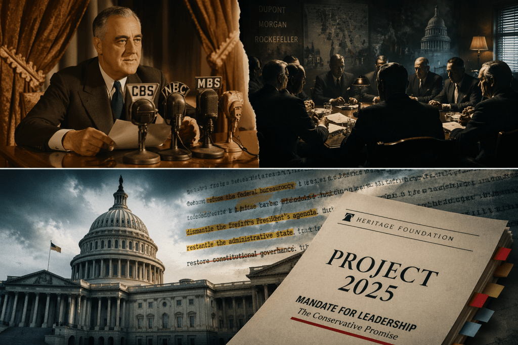 A questo punto bisogna fare ciò che i fanatici della semplificazione detestano: distinguere. Sarebbe storicamente scorretto sostenere che esista una continuità diretta e dimostrabile tra il Business Plot del 1933 e Project 2025. Non c’è una catena documentata di comando, non c’è un testimone passato di mano in mano per novant’anni come in un romanzo di spie. Ma l’analogia resta forte, quasi imbarazzante nella sua chiarezza: quando una parte dell’élite economica o ideologica percepisce la democrazia sociale come un intralcio alla concentrazione della ricchezza e del potere, la risposta tende a essere sempre la stessa. Prima si attacca la legittimità dello Stato regolatore. Poi si prova a svuotarlo. Infine lo si occupa, ufficio per ufficio, come una casa lasciata senza serratura. Questa è un’inferenza storica, non una prova di discendenza lineare; ma è un’inferenza che i documenti rendono, almeno, terribilmente plausibile. (Teach Democracy)
