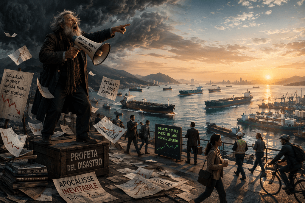 Mentre le armi tacciono e i colloqui prendono il posto delle esplosioni, arriva sempre il momento in cui i trombettieri della catastrofe devono fare un passo indietro e guardare i fatti. Molti avevano già disegnato scenari da fine del mondo: escalation senza freni, vittorie sbandierate a Teheran, mercati in delirio, Medio Oriente ridotto a una sala d’attesa dell’apocalisse. Bellissime narrazioni, certo. Peccato per un dettaglio minore: la guerra, quella vera, non obbedisce ai talk show. Si scontra con limiti materiali, politici, economici. E soprattutto con una realtà che ha la cattiva abitudine di rovinare le fantasie di chi ama i proclami più dei rapporti di forza.