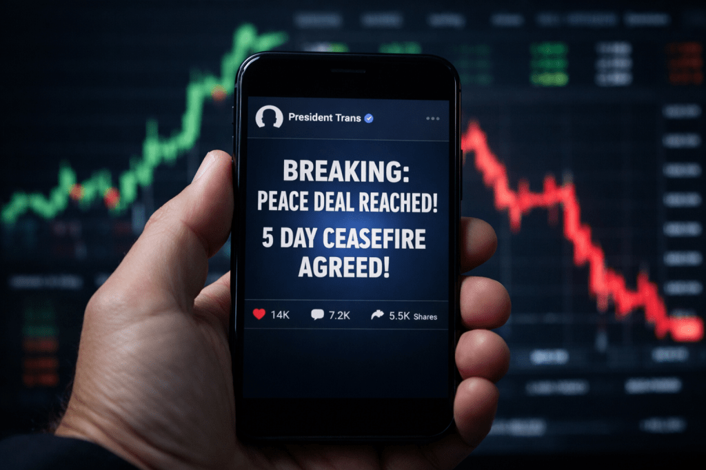 Non serve altro. I futures azionari schizzano a +2,7%. Il petrolio crolla del 10%. In pochi minuti, si materializzano oltre 1.700 miliardi di dollari di valore. Non creati — attenzione — ma riclassificati. Spostati. Redistribuiti tra chi era dentro prima e chi arriva dopo.